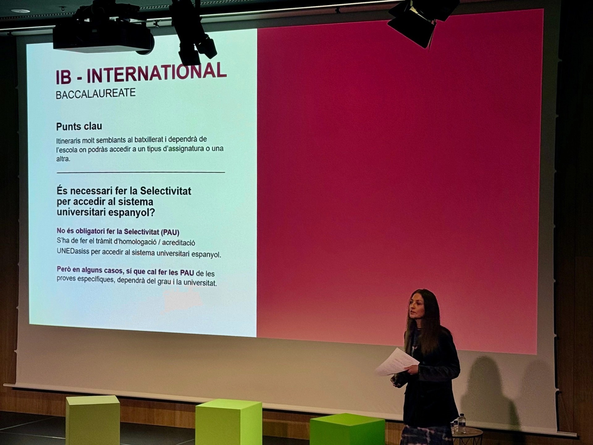 També va posar èmfasi en la formació en valors, element clau en tots el centres membres de la Universitat Ramon Llull, amb l’objectiu de formar professionals amb sentit ètic i capacitat de col·laboració, elements que es treballen en centres que aposten per un seguiment personalitzat de l’alumne. En aquesta línia, la Sra Torné va desgranar els criteris clau que s’han d’analitzar abans d’escollir un grau, des de l’ocupabilitat i els convenis internacionals fins a l’encaix de l’alumne amb la cultura de la institució.