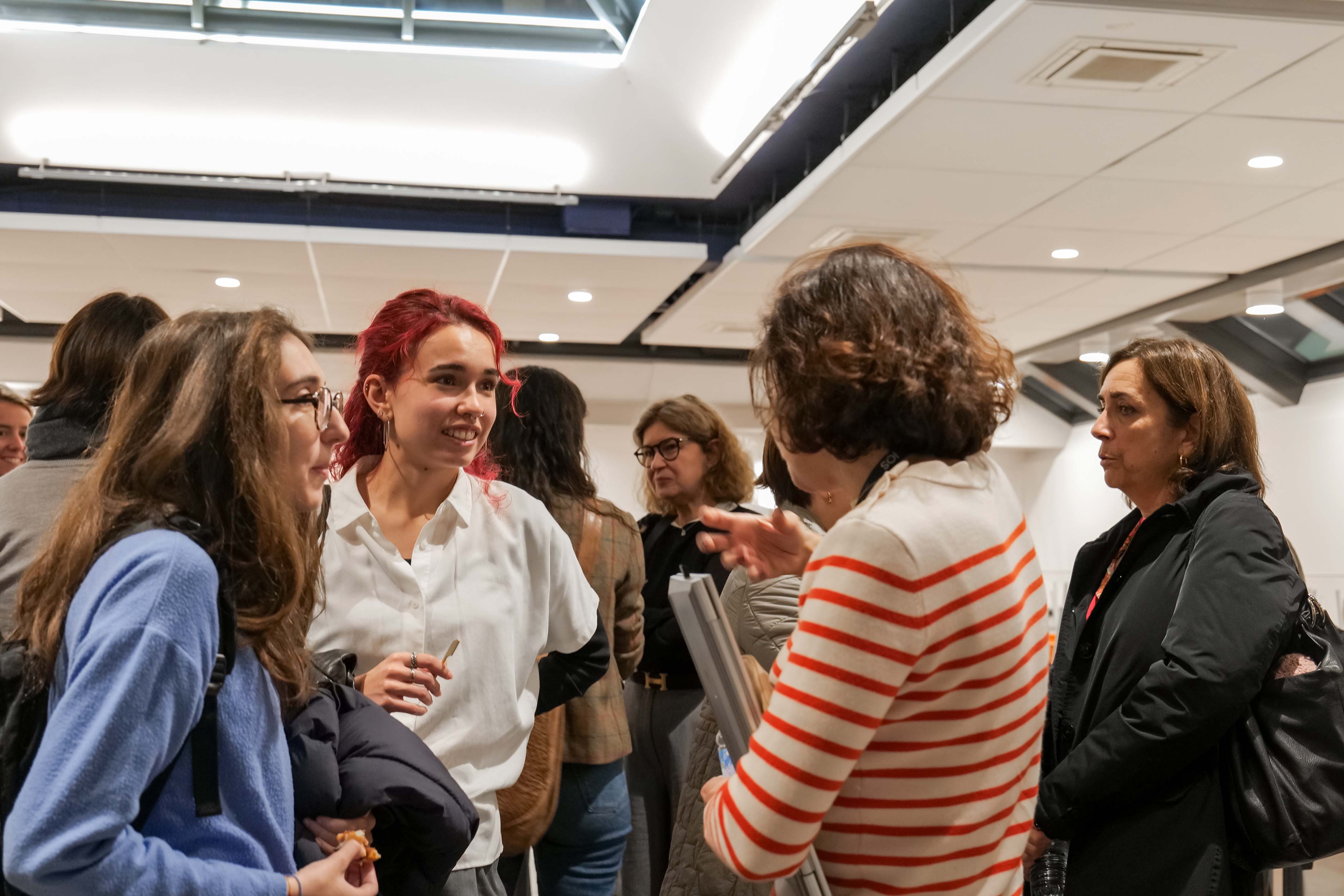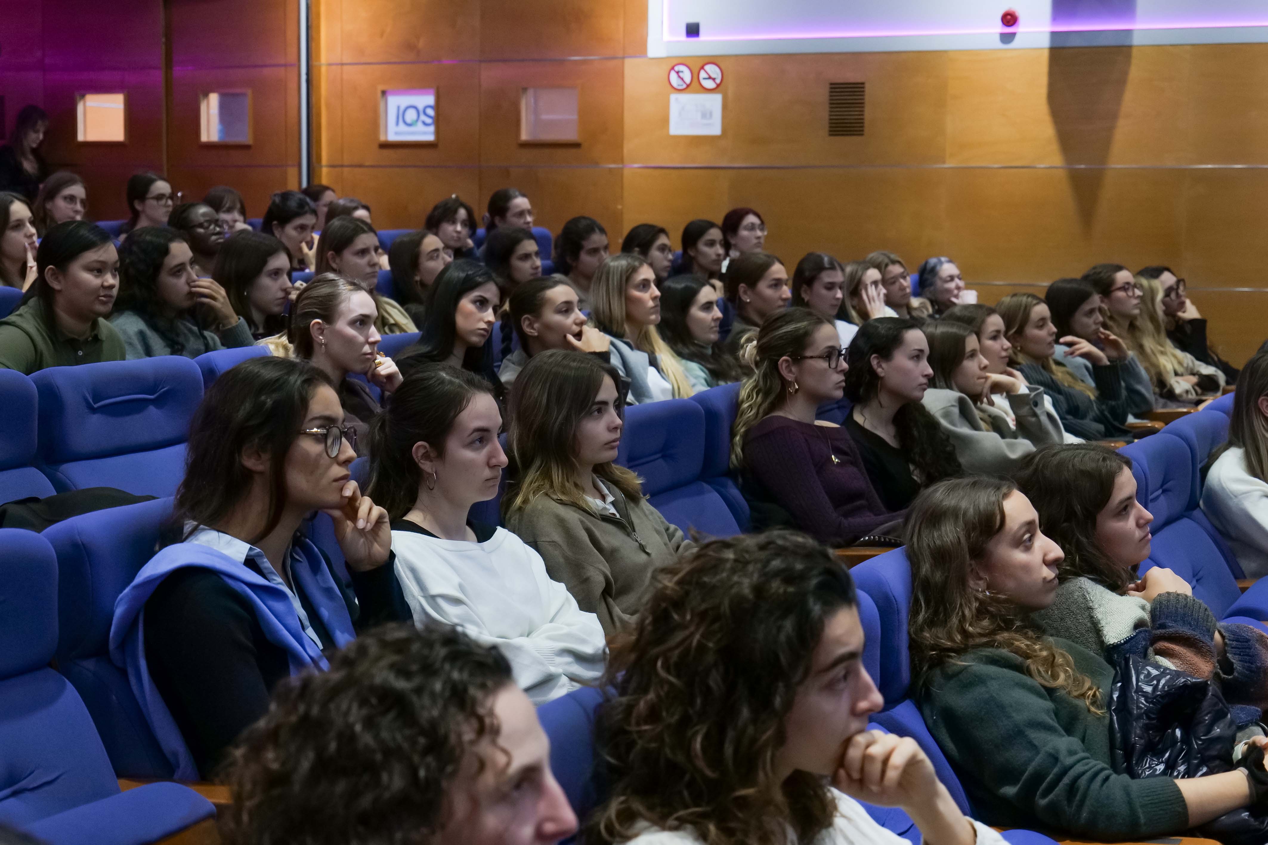 La jornada empezó con un acto dirigido a las alumnas. En un auditorio lleno a rebosar, la presentación puso el acento en la necesidad de romper barreras y crear espacios de apoyo que ayuden a las futuras profesionales a construir trayectorias sólidas. Entre estas barreras, destacó especialmente la dificultad de acceso a posiciones directivas, incluso en sectores donde la presencia femenina es significativa.