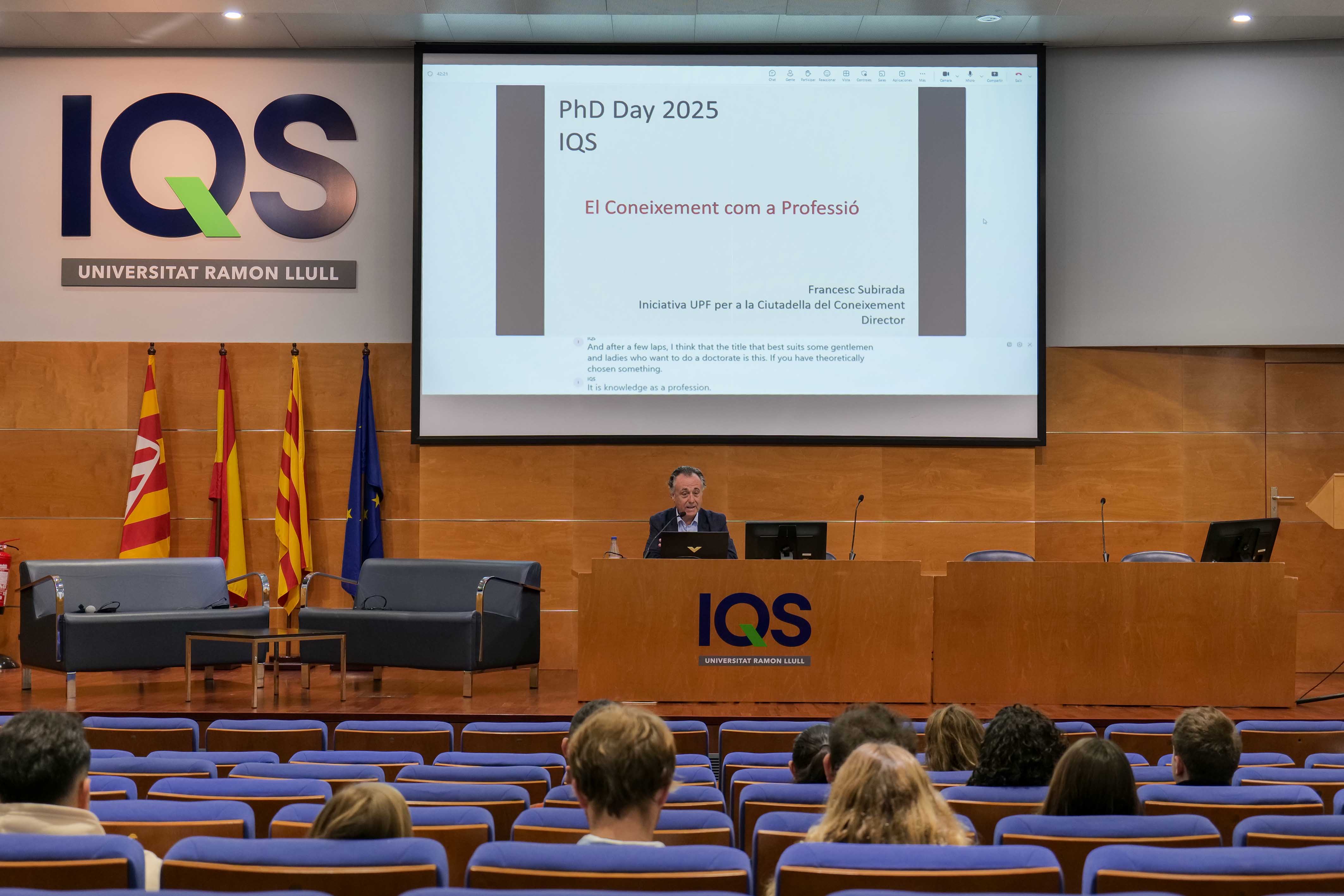 Como en otras ocasiones, la inauguración y bienvenida estuvo a cargo del Dr. Salvador Borrós, director general de IQS, quien agradeció y destacó la función que desarrollan los doctorandos, con “aportaciones de investigación espectaculares y con un papel fundamental en el conjunto de la investigación de nuestro centro, con cifras que van subiendo año tras año”.