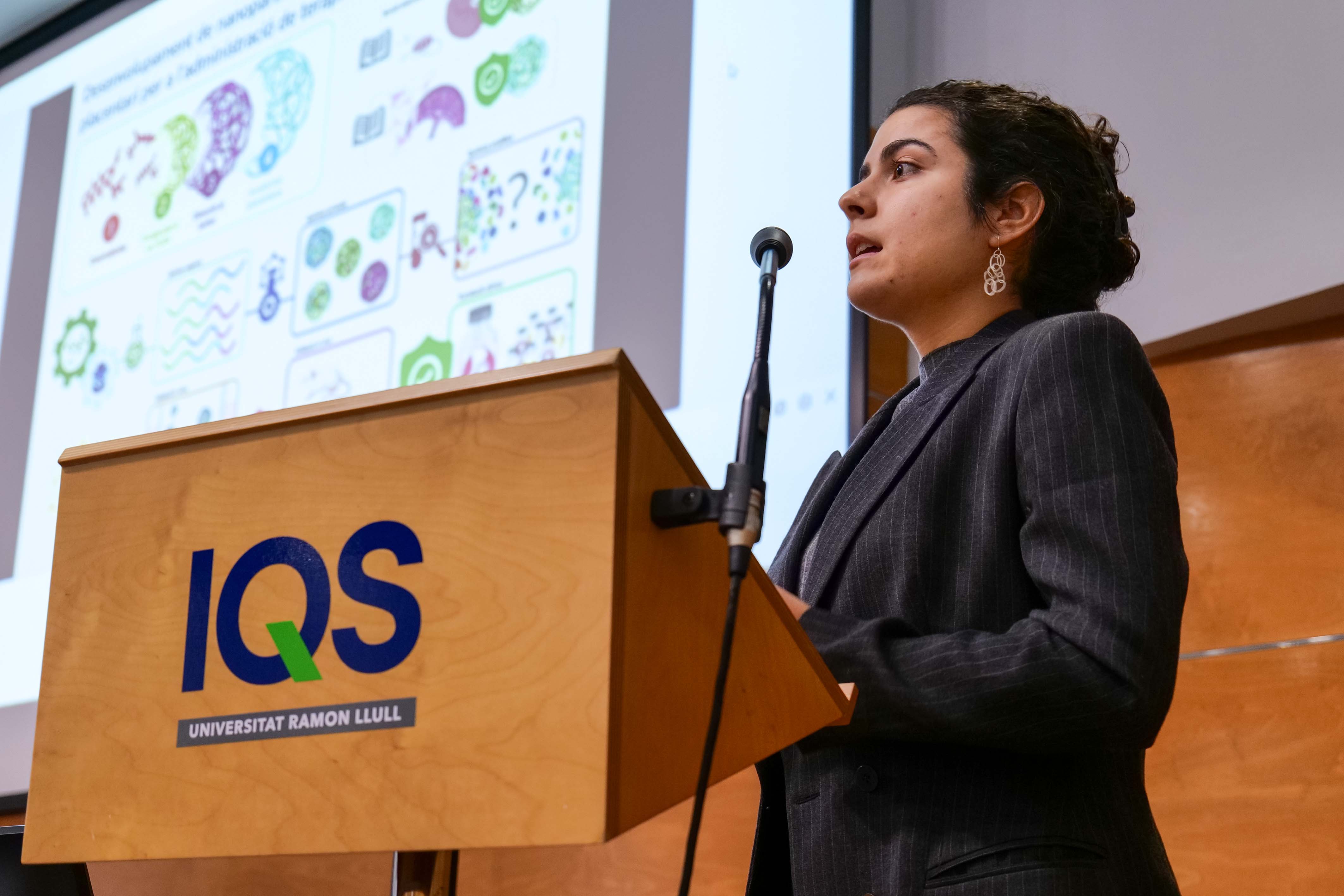 En primer lugar, se llevó a cabo la fase eliminatoria del concurso ‘Presenta tu tesis en 4 minutos’, un concurso que organiza la Fundació Catalana per la Recerca i la Innovació – FCRI con el objetivo de divulgar los proyectos de tesis en curso en las doce universidades de Cataluña. De todas las presentaciones, los propios alumnos de doctorado de IQS escogieron las tres – una por cada programa de doctorado – que representarán al centro en el concurso final de la Universidad Ramon Llull, donde se elegirá quien representará finalmente a esta universidad en el concurso final de la FCRI.