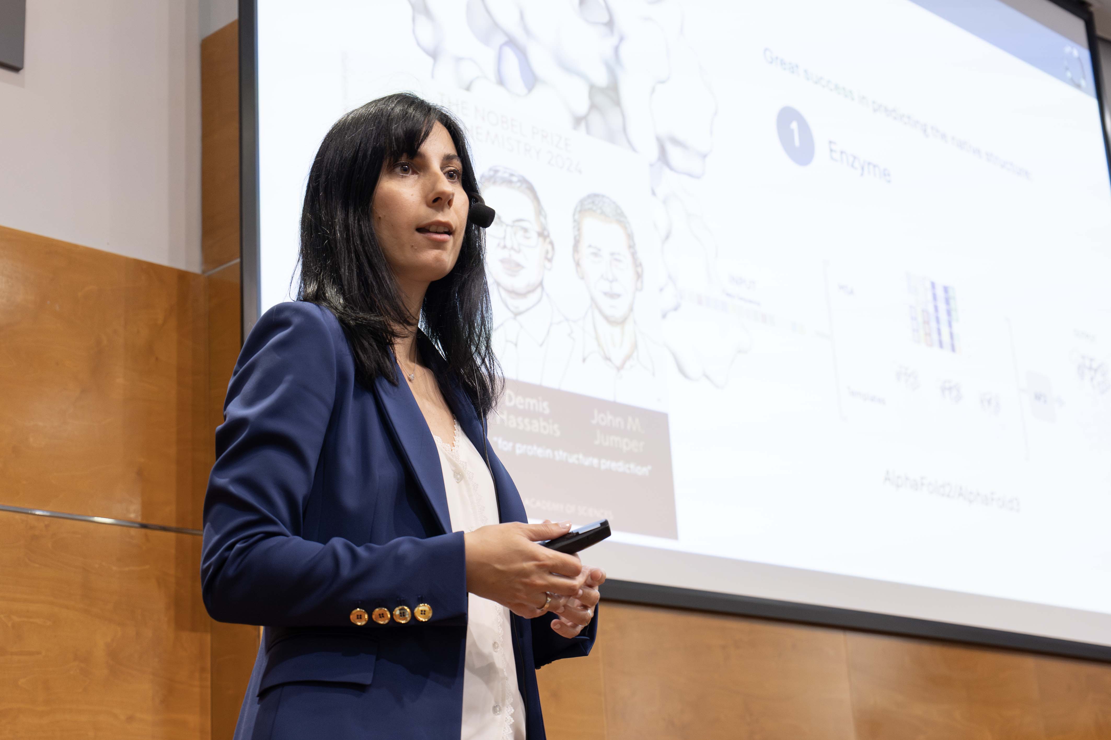 La última conferencia de este tercer año del ciclo ChemBioEng IQS Talks (mayo 2025) fue la que ofreció la profesora Dra. Silvia Osuna Oliveras, investigadora ICREA del Instituto de Química Computacional y Catálisis del Departamento de Química de la Universitat de Girona y experta en el diseño computacional de enzimas, unos sistemas esenciales para la vida dado que aceleran las reacciones químicas en una escala de tiempo biológicamente compatible, además de actuar como catalizadores con alta especificidad y selectividad. Bajo el título “How to computationally generate efficient enzymes?”, la Dra. Osuna presentó una visión general de los enfoques para diseñar enzimas con modulación alostérica de la actividad, llevados a cabo por su grupo de investigación. Estos enfoques están basados en correlaciones derivadas de simulaciones de dinámica molecular a escala de microsegundos, técnicas de muestreo mejoradas y, más recientemente, el desarrollo y aplicación de plantillas basadas en el programa AlphaFold2.